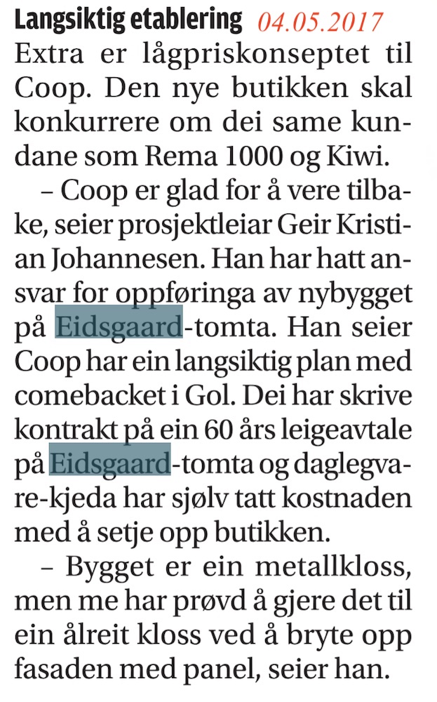 Etter kvart som tyngdepunktet i Gol sentrum flytta seg vestover, og etter at dei store varekjedene etablert seg i bygda, minka trafikken ved samvirkelaget gradvis. – "Me har til ein viss grad klart å behalde gamle kundegrupper, men har ikkje fått tak i dei kjøpesterke yngre kundane", seier Kittil Myrvollen til Hallingdølen 5. mars 1997. Han håpa å få oppleve det med Coop- Mega i Kremmartunet. Coop Mega hadde si første annonse i "dølen" 13. mars 97. Coop vart verande i Kremmartunet ut februar 2012. Då var det kroken på døra. Men kalenderåret 2015 er Coop tilbake via Matkroken. Det skjedde ved at Coop kjøpte alle butikkane til ICA som holdt til hos Eidsgaard. ICA som eigde både Rimi og Matkroken opphørte i oktober 2014. Coop bestemte seg for å bli verande ved Heslabrua, men ynskte seg nye lokaler til Coop Extra. Det løyste seg ved at Coop sjølv bygde lokala til Coop Extra der motellet stod, men teikna ei leigeavtale på tomta i 60 år. 11. mai 2017 kløpte ordføraren snora.