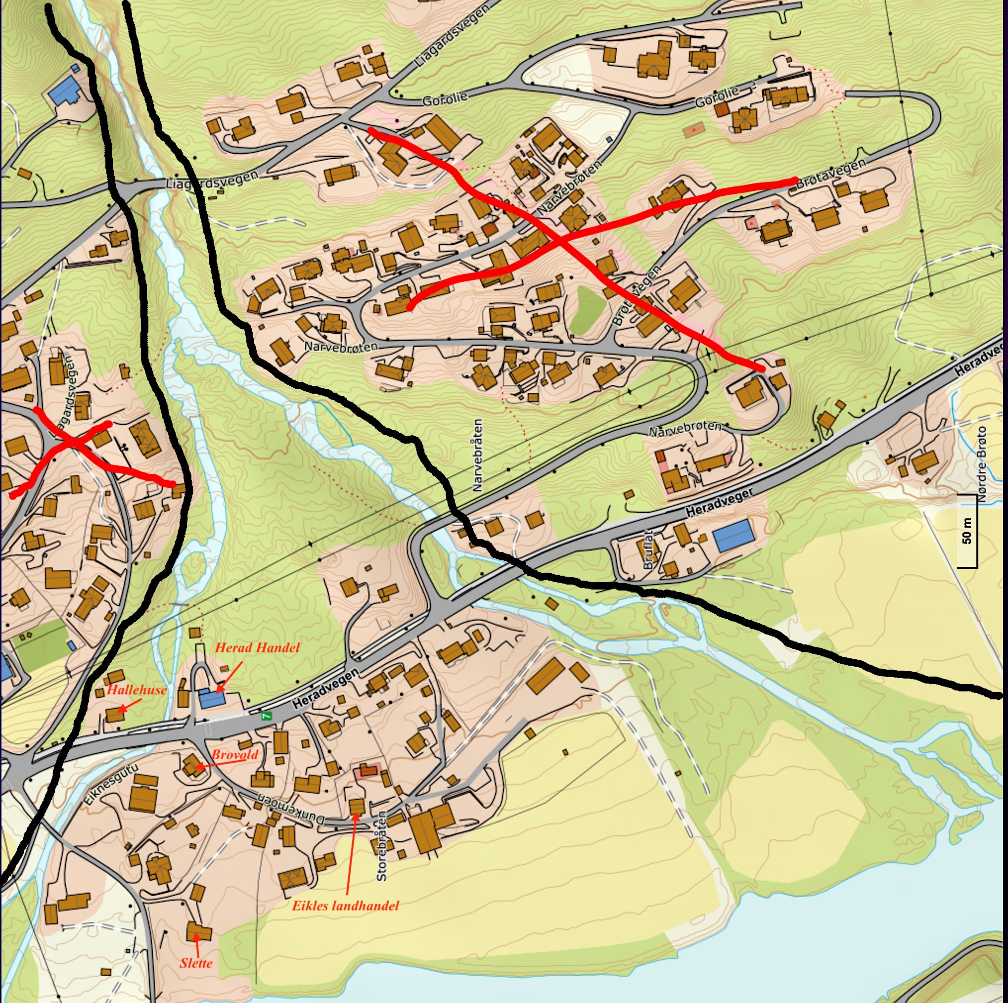🛣️ Vegar: Gamle ølmannvegen – gamal ferdselsveg for folk og buskap. Tunet – gardsplassen. Avstikker – sideveg. Syner enno – kan framleis sjåast i terrenget.