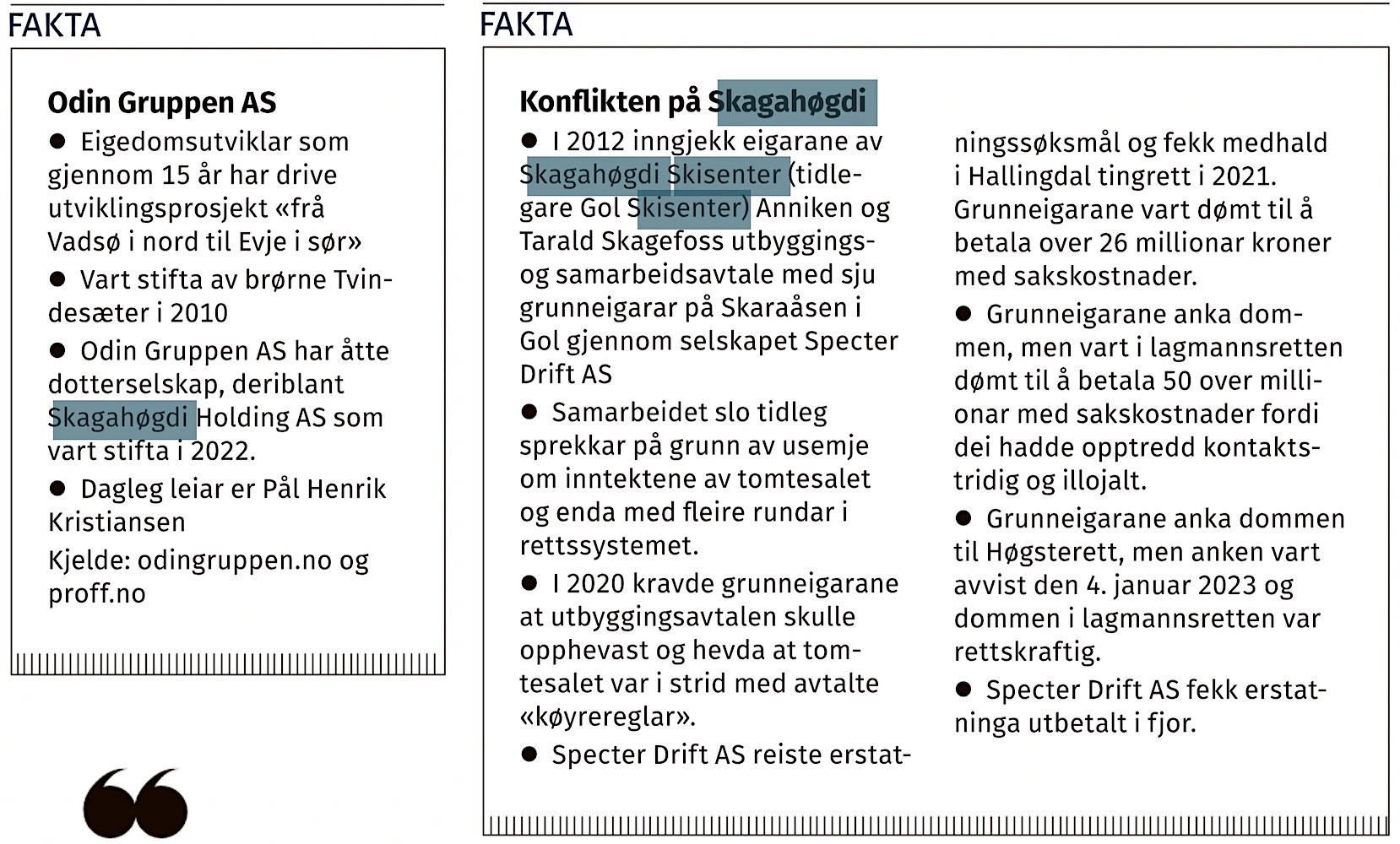 Gol skiheis(B) vart bygd seinhaustes i 1964(B) og hadde offisiell opning 24. januar 1965(B). I 2013 vart skiheisen selt(B) og namnet vart endra til Skagahøgdi skisenter. I Hallingdølen av 23. januar 2024 står det at Odin Gruppen AS(B) har kome inn på eigarsida(B) og har store planar for korleis destinasjonen skal utviklast(B). Namneendring: Gol fjellandsby og Gol skisenter.