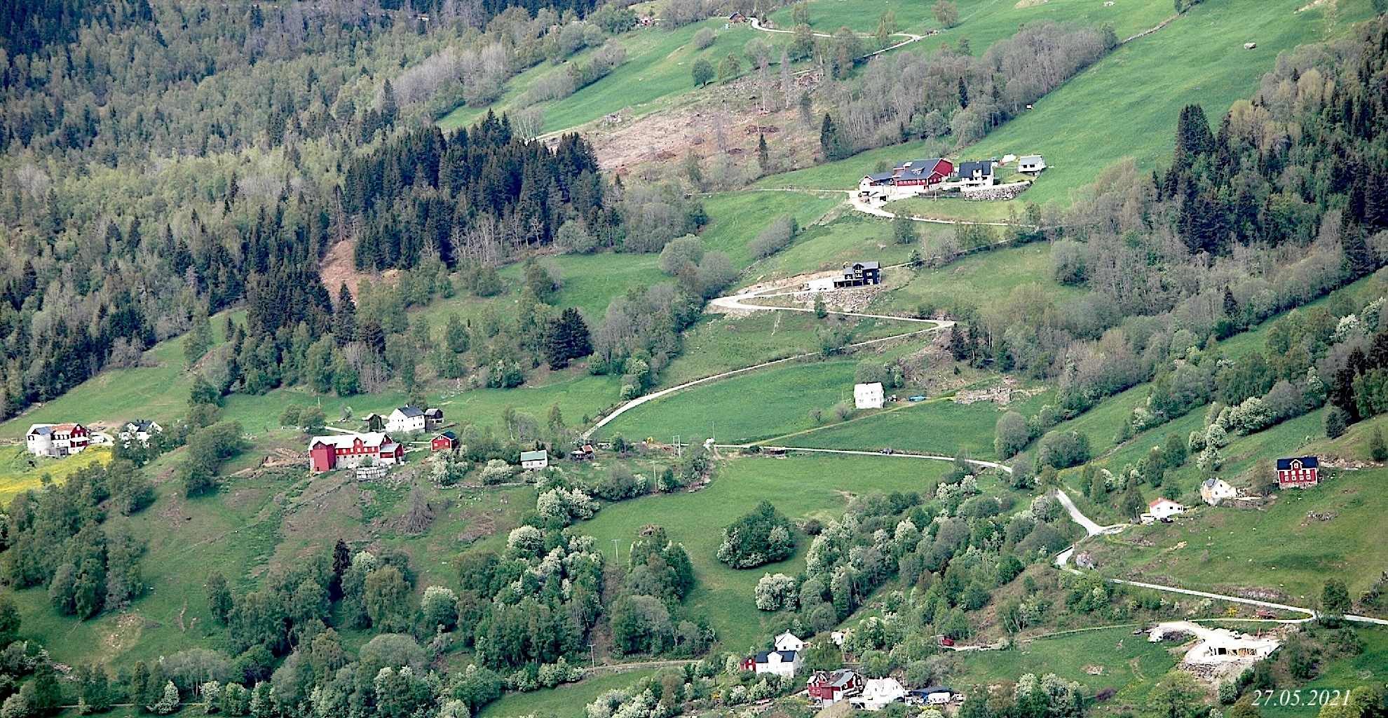 OPHEIM, GNR. 97 Gardstunet til bnr. 1 ligg 327.7 moh. og er mellom dei høgsliggjande gardane både i Jøongasokni og i heile Hafslo prestegjeld. Bnr. 2 oppe på Sjåflat ligg ovanfor dei andre bruki 396.2 moh.