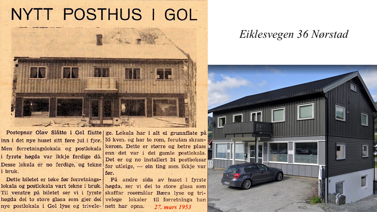 Eiklesvegen 36 Nørstad, vart bygd i 1953, men skild frå 5/66 i 1962 og selt til Olav Slaato. Olav vart no postopnar og posthuset vart flytt frå nabohuset Fagerlund og hit.