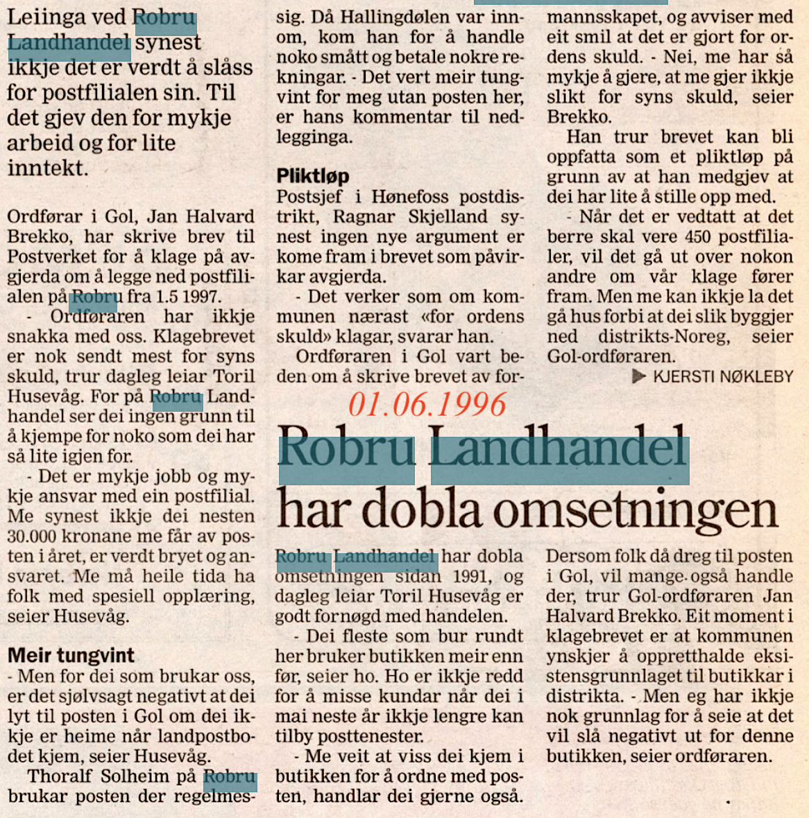 40 år etter flytta posthuset til Eiklesvegen 36 Nørstad, som vart bygd i 1953. Ola Slaatto fekk tomt av onkelen sin, 5/66. Olav vart no postopnar her. Posthuset i Gol vart verande på stasjonssida i 63 år. Forutan postombering i Gol og Herad, vart også posten til Hemsedal henta her. På 1960- talet var Gol postkontor det største i Hallingdal. På Robru hjå kjøpmann Bleiktvedt vart det opna brevhus i 1947, som 1961 vart Robru postopneri. Men frå 01.05.1997 var det kroken på døra også her.