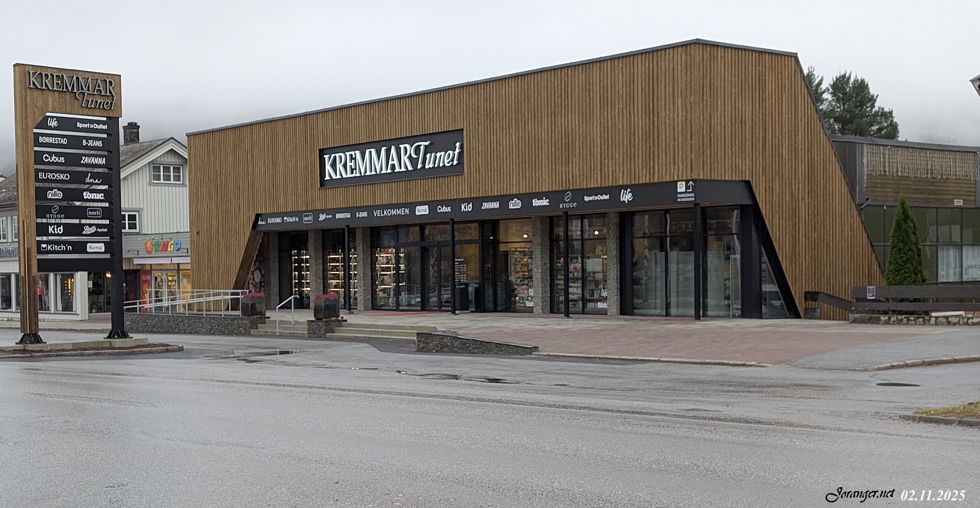 Sentrumsvegen 116 og 118 opna etter ombygginga i mars 1997. Tomta er ombruk: Peder Rustberggard starta Gol Bygg(B) i eit leigd rom i 1946. Han bygde trekanten i 1949 og dreiv forretinga der til han sette opp eit større bygg i 1961 på Tingvoldtomta som han kjøpte i 1960. Ny utviding kom i 1969(B), men den største endringa kom i 1982(B). Du kan lesa heile historia her(B). 20/49 Sentrumsvegen 116 og 118 opna etter ombygginga 12 mars 1997 med namnebyte til Kremmartunet(B)(B). Kremmartunet fekk byggeskikkprisen i 1998(B). Fleire bilder under tala: 1. 2. 3. 4. Union Eiendoms-kapital AS kjøper Kremmartunet i desember 2006(B). Kjøpesenteret i Gol sentrum har over fleire år vore gjennom store ombyggingar. Det siste er ombygging av fasaden mot sentrum som gjenopna 7. oktober 2025(B).