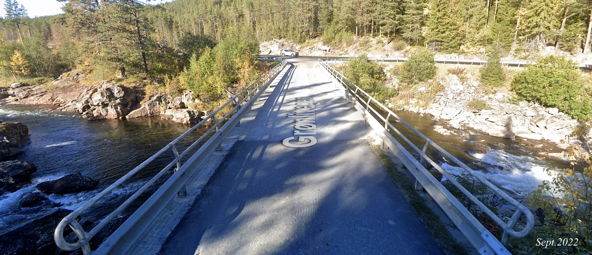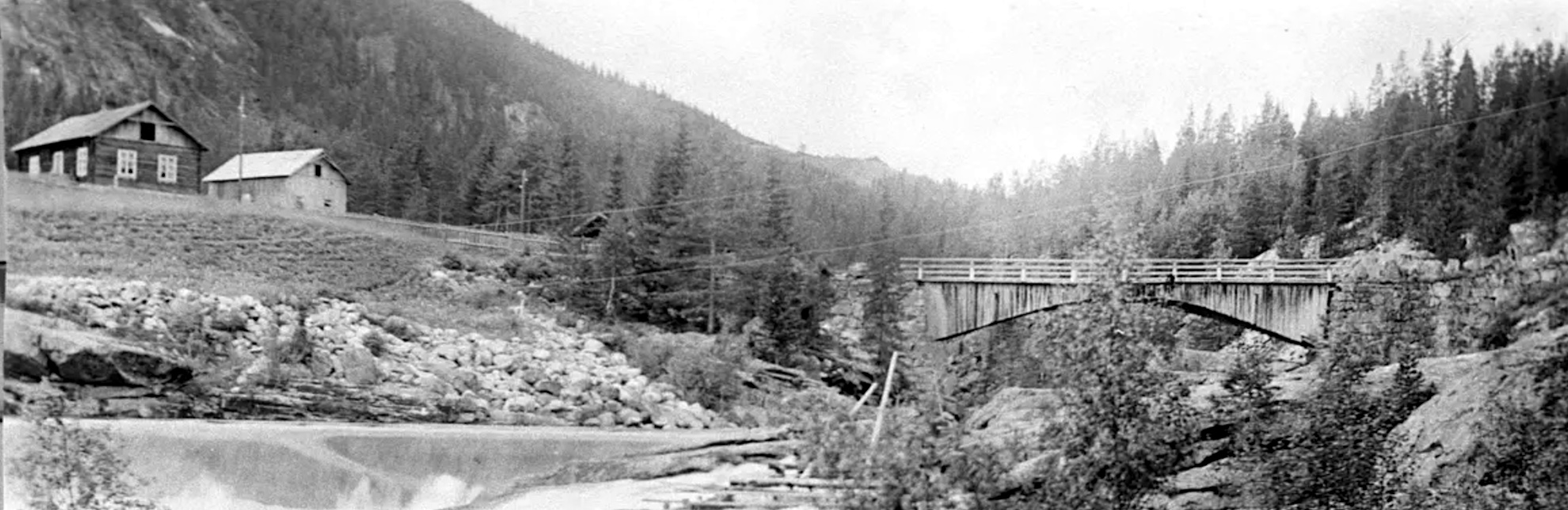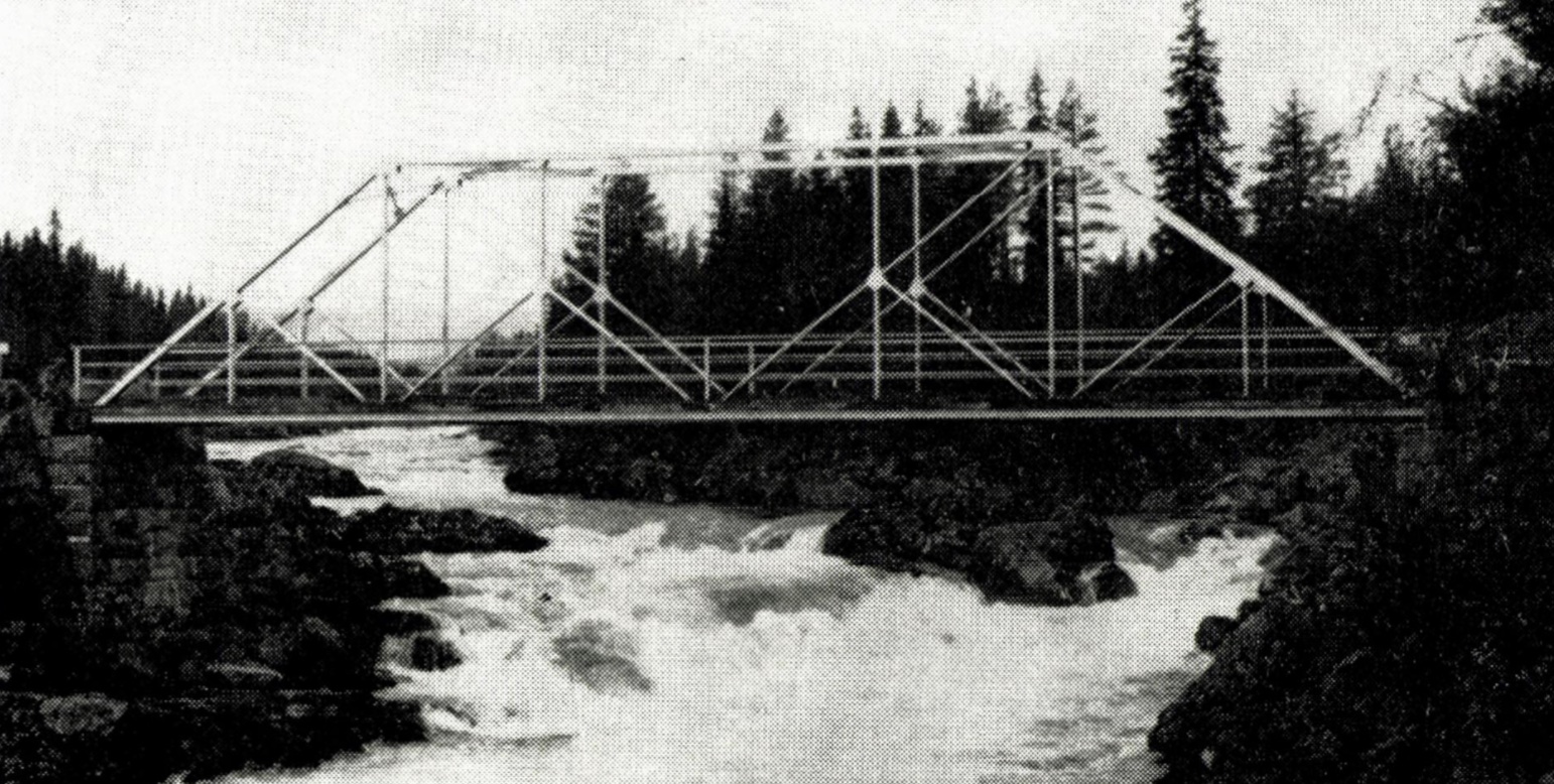 Den første tre- spennbrua med mura brukar frå 1876. Bilde frå Statens vegvesen sitt arkiv. Den første Grønlibrua frå 1931.