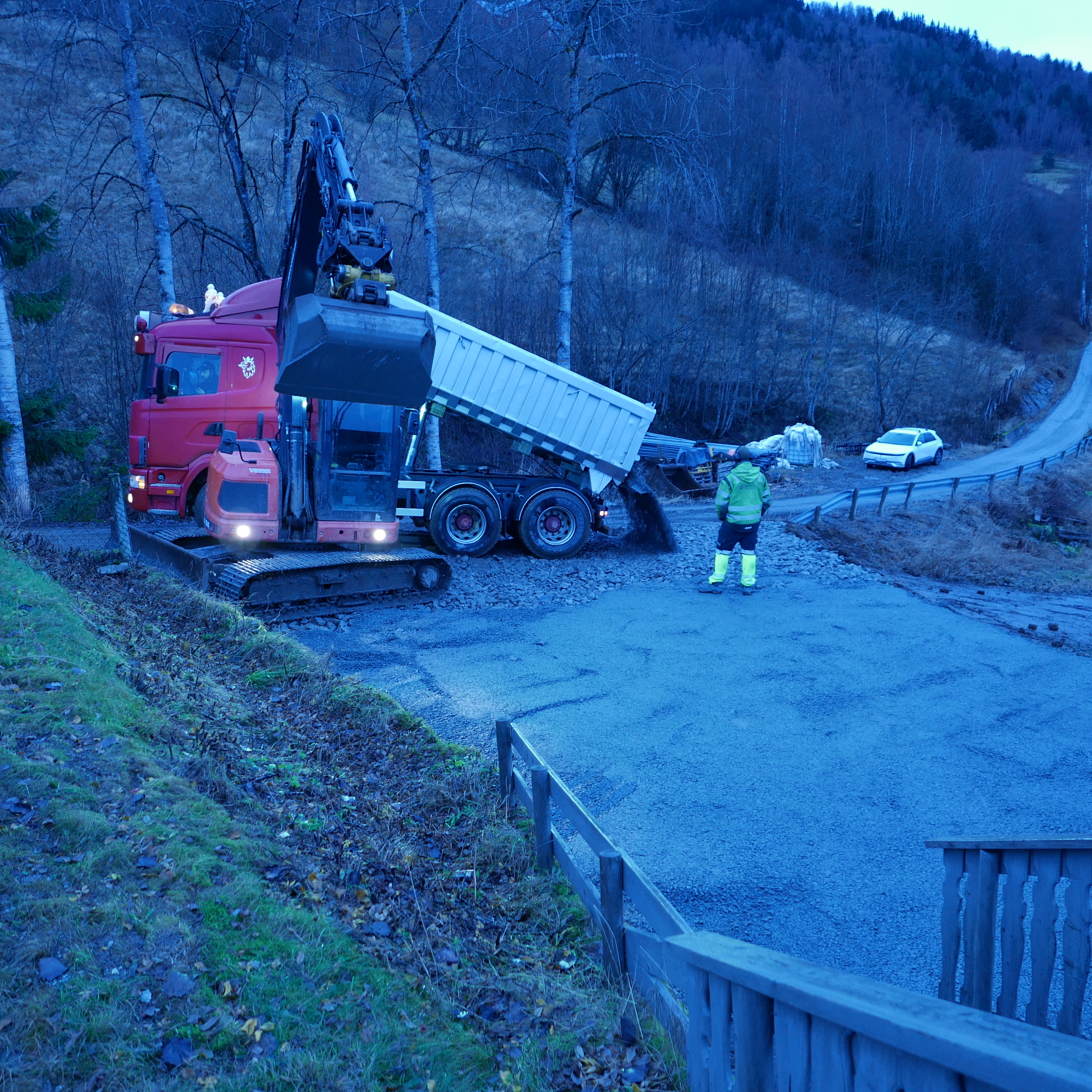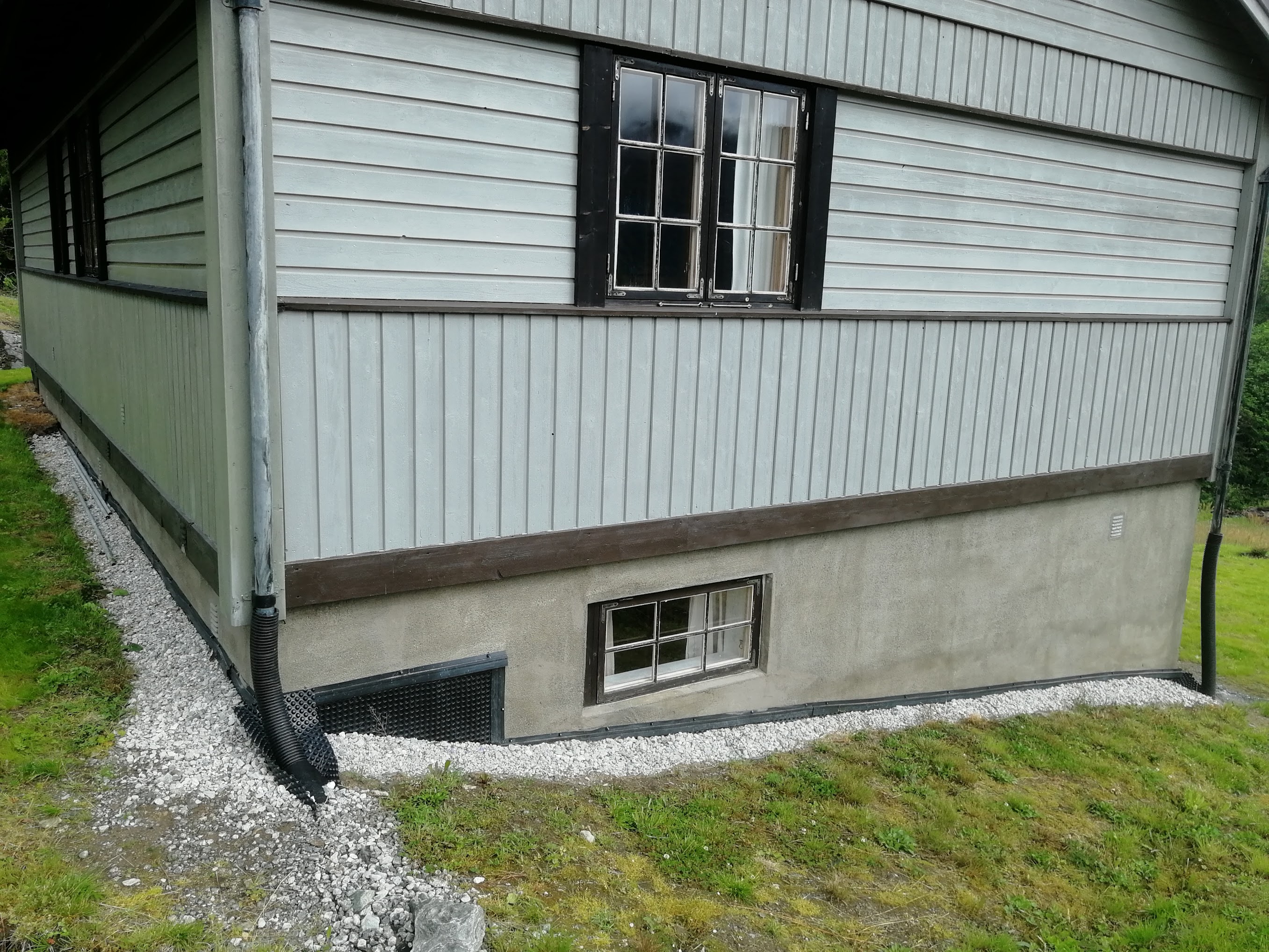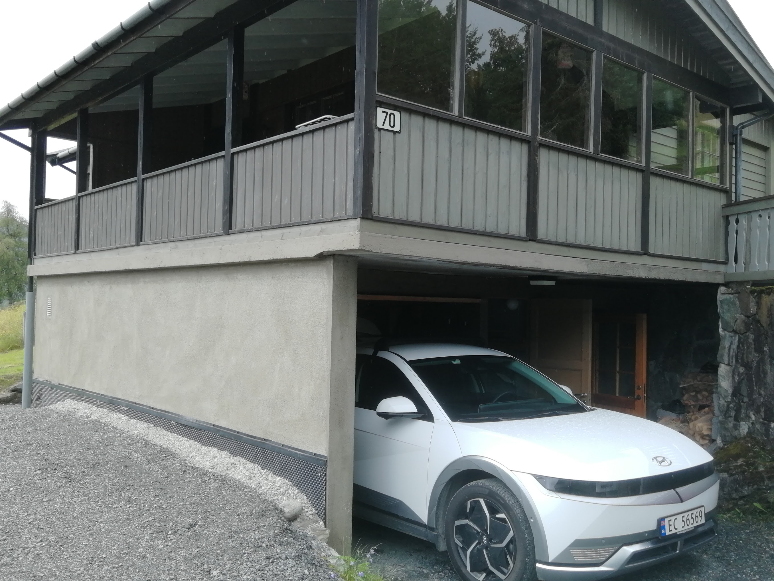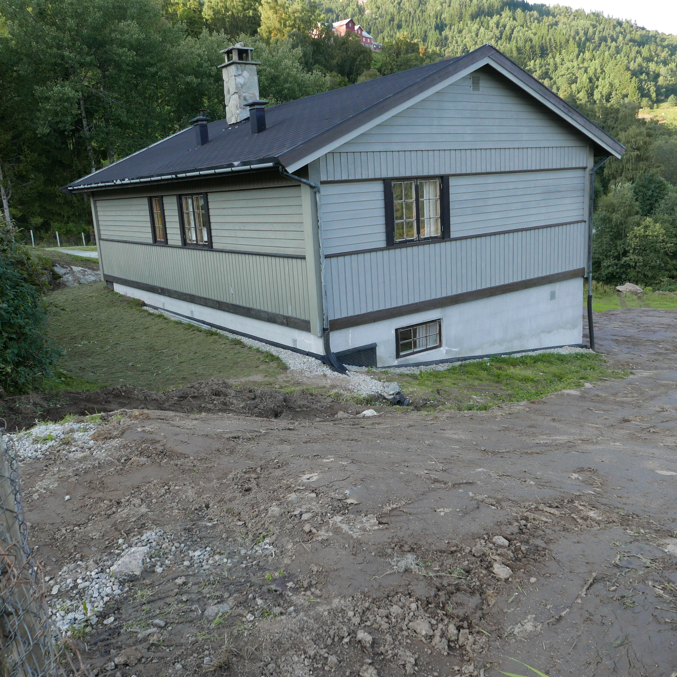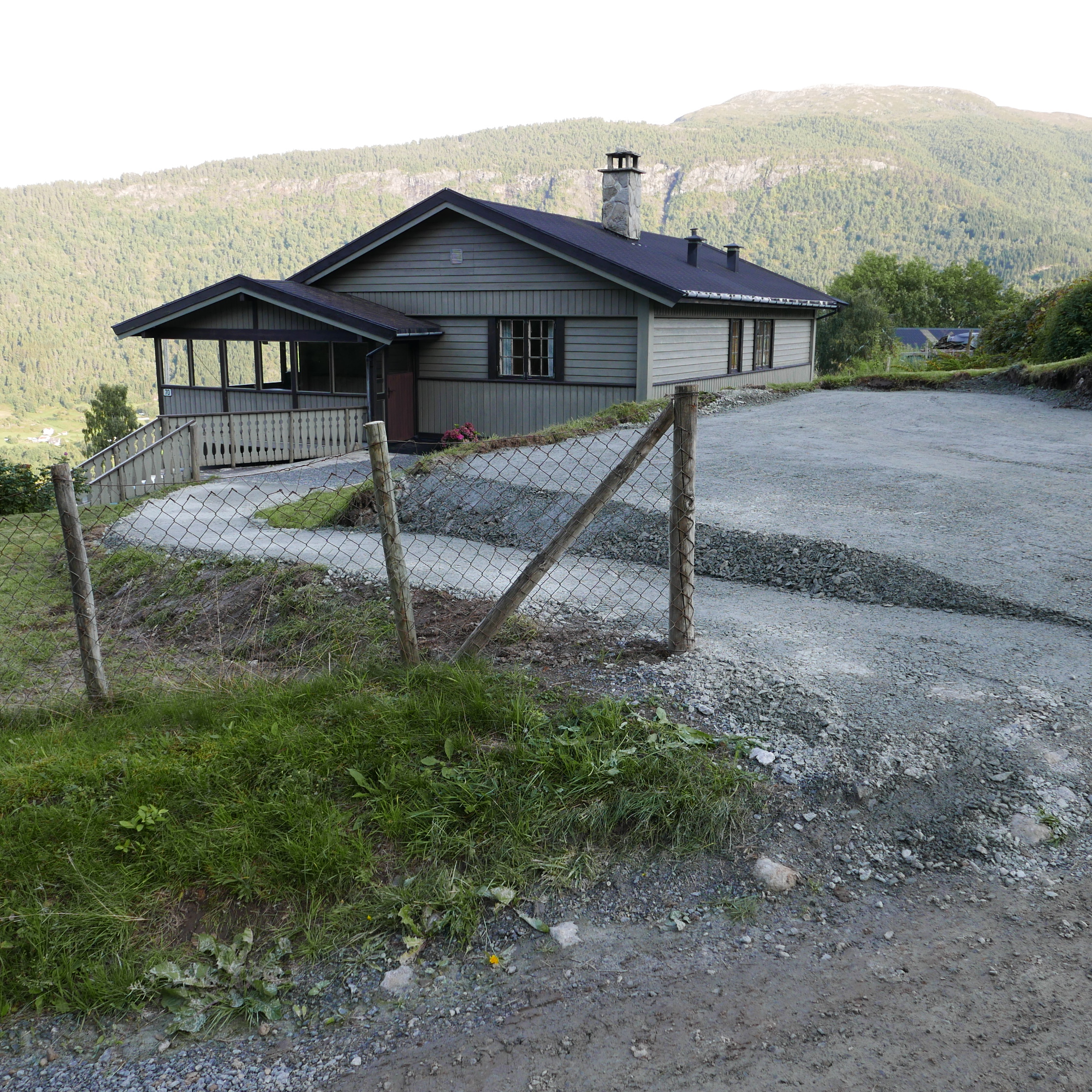 Vi har kalla huset for Brubakken fordi den ligg nær brua over Tverrelvi på Tørvi og det er ein liten bakke opp hit. Tørvisvegen 70 vart bygd i 1980/81 med standard som bustadhus, men dette har vore hytta vår i 46 år. Hovudetasjen har vindfang, gang, stove, kjøkken, "bad"(servant og wc) og 2 soverom, til saman 72,2 m2., pluss stor overbygd veranda på 20,8 m2.(B)(B)(B)(B)(B) Grunna pålegg er treverk fjerna frå pipa(B). Underetasjen har gang, stove med opplegg til kjøken, 2 soverom, bad, matbod og garasje, til saman 54 m2 buareal og 22 m2 sekundærareal. Det er dusj berre på badet i underetasjen. Alle romma oppe har trepanel i tak og vegger og grangolv. Nede er det panel på vegger i alle rom unntatt badet som har malte plater på vegger og himling. I soverom og stove er det malte plater i himling. Gang og trappeoppgang har også panel i himling. I stova oppe er det open himling og flat himling i dei andre romma. Panelen er ubehandla. Hausten 2022 oppdaga taksmann fukt i sokkeletasjen. Golva vart etter det rive og oppattbygde. Samtidig vart det greve rundt hytta og sikra mot vatn(B). Den gamle septiktanken vart fjerna mot ein ny(B). Vegen inn til garasjen vart utvida, steinsett og grusa(B). På oppsida er kome ein ny parkeringsplass(B) med "rulatorstig"(B) ned til hovudinngangen. Viser til kartverkets "mine eiendommer". Viser til godkjend el- og brannsjekk. På taket er det pappshingel som takstmann har gitt pålegg om å skifte av aldersgrense. Det same med plasttakennene.